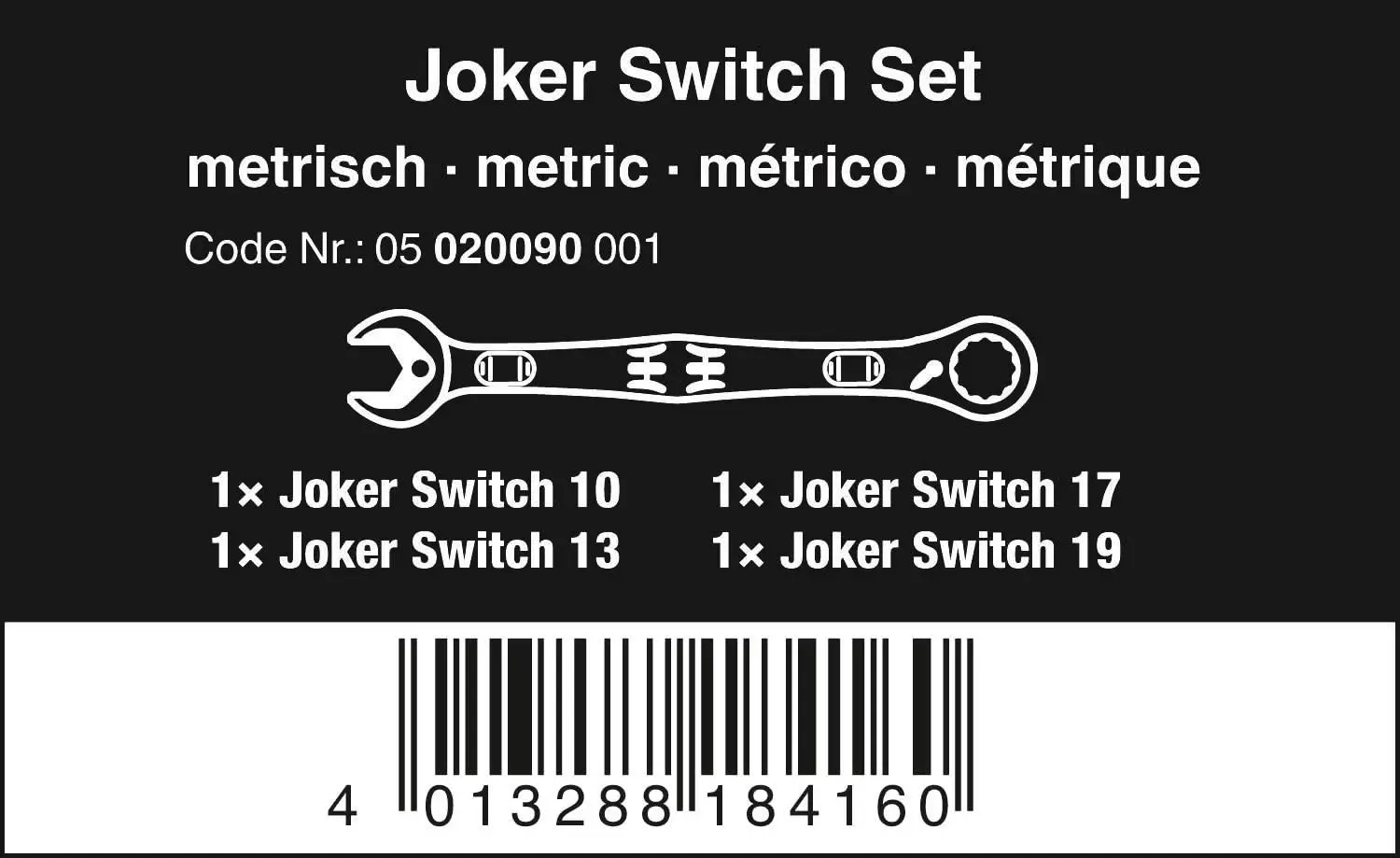 Wera 020090 Očkoploché račňové kľúče 10 ÷ 19 mm 6001 Joker 4 Set 1, vyhnuté - 4 dielov (W05020090001)
