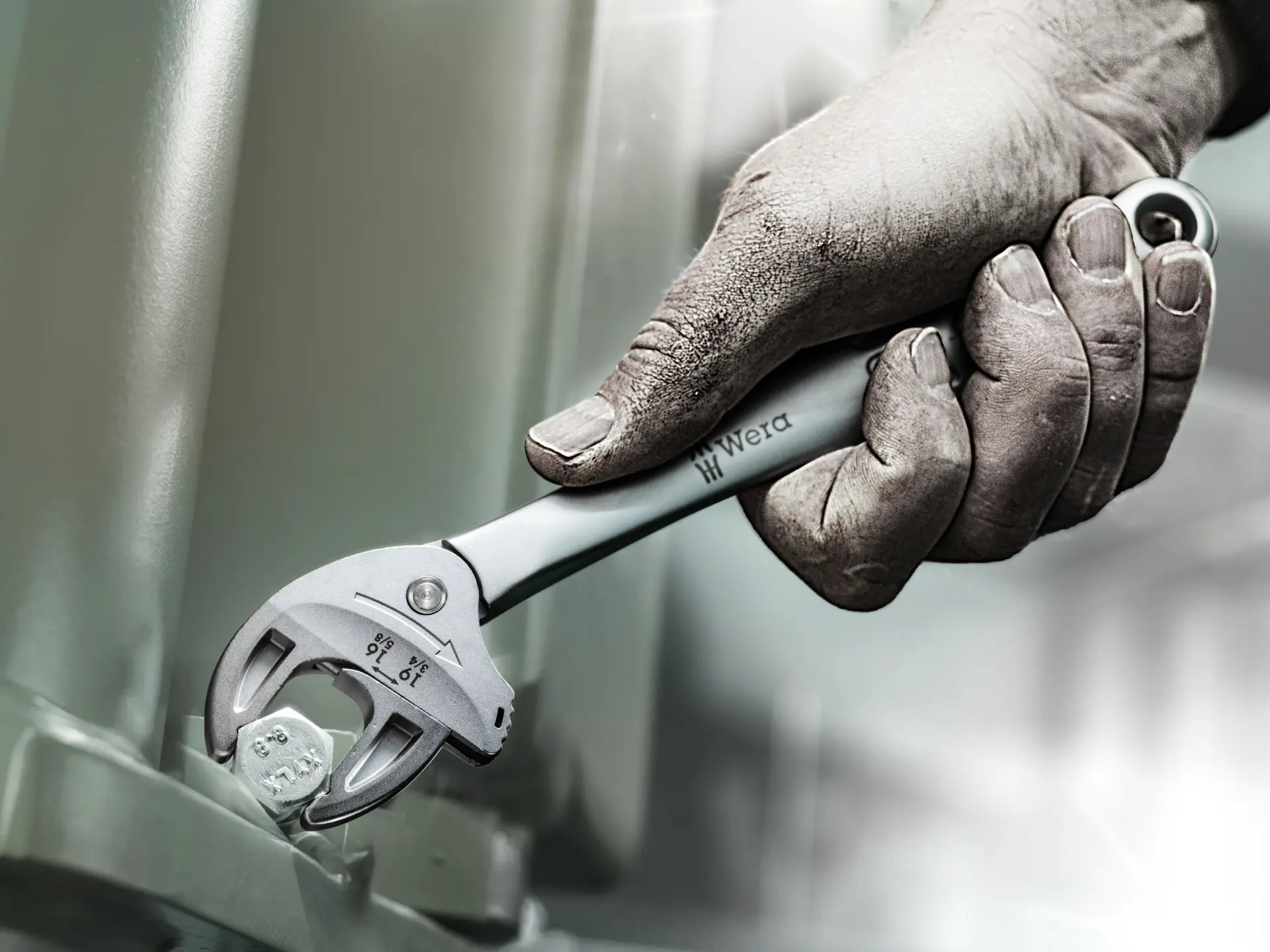 Automatické a plynulé uchopenie šesťhranných skrutiek a matíc jedením kľúčom Joker 6006 pokrývajúcim všetky metrické a palcové rozmery v príslušnom rozsahu použitia