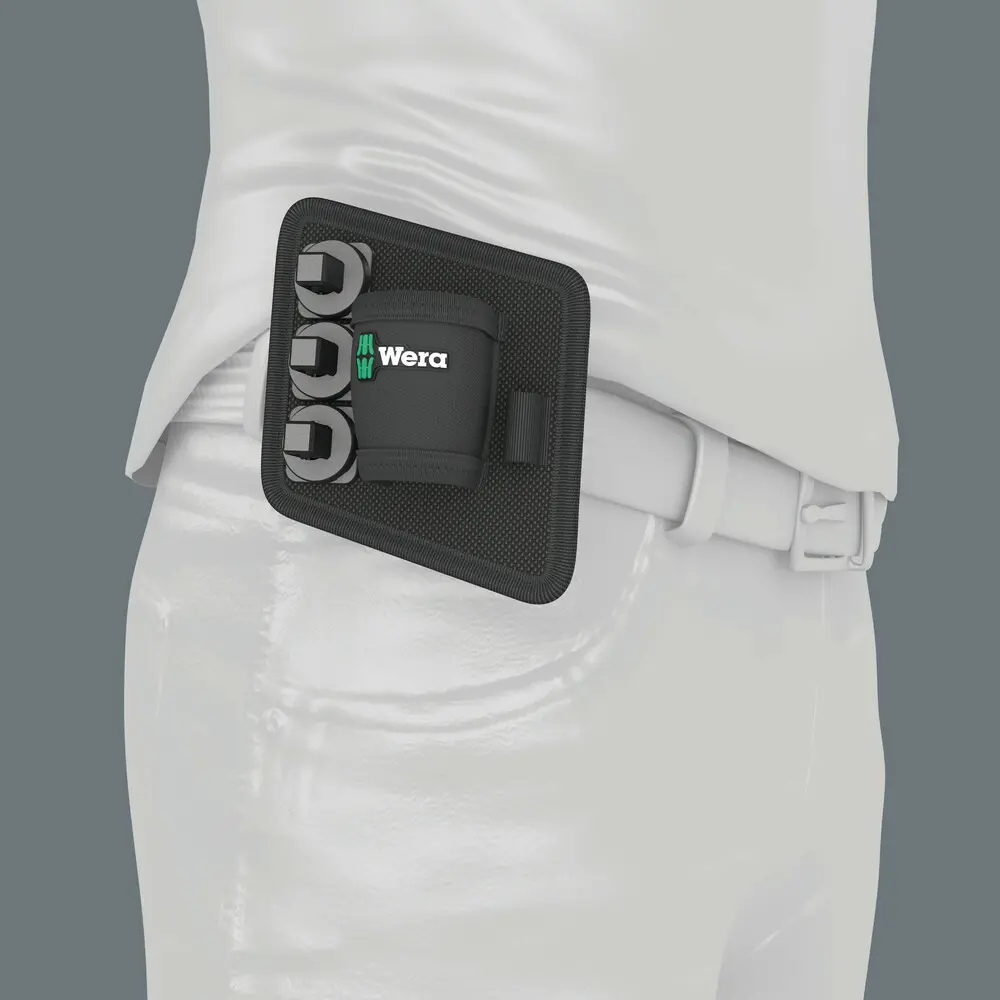 Robustní textilní držák na opasek pro úsporu místa při uložení nářadí; ideální pro mobilní použití, protože použitý materiál je lehký a pevný; vhodný také pro připojení k systému Wera 2go. Pro sadu nářadí 8009 Zyklop Pocket Set 2 a 8009 Zyklop Pocket Set Imperial 2.