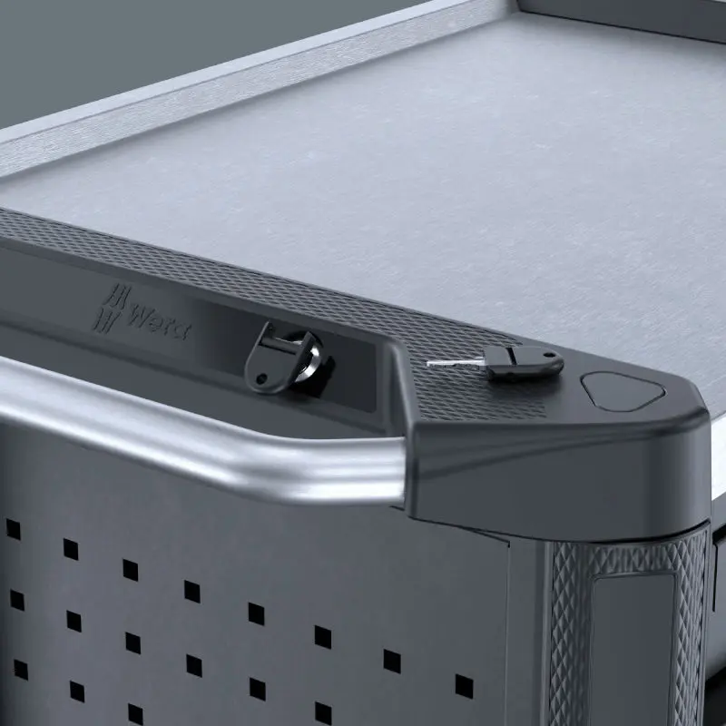 Samozatvárací mechanizmus a zamykacie zásuvky zabraňujú nechcenému otvoreniu a minimalizujú riziko prevrátenia dielenského vozíka