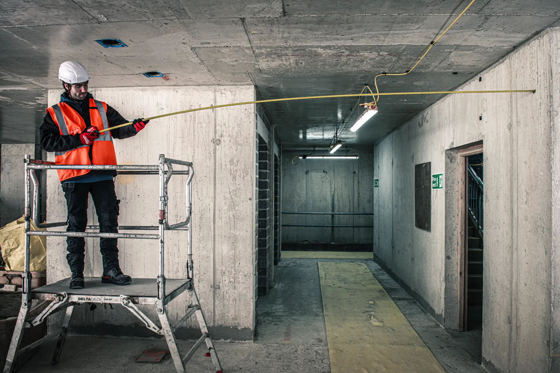 Měřící pásmo, šířka pásku 35mm, délka 8 metrů, oboustraně potištěná páska. Páska měří na vzdálenost 5 metrů bez zalomení. Možnost aretace - posuvná brzda, zamezení rolování prstem (FINGERSTOP).