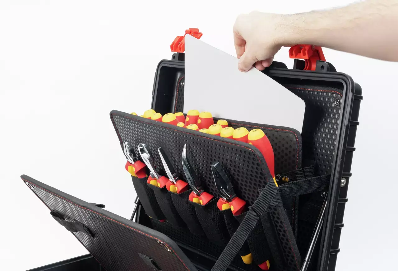 Vložky na nástroje v kufri sú koncipované s ohľadom na efektívne a ergonomickú prácu tak, že umožňujú rýchle, prehľadné a ľahké vyberanie všetkých nástrojov