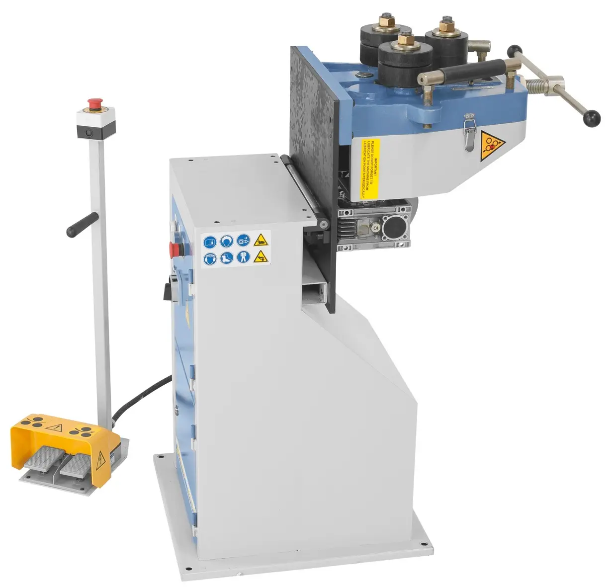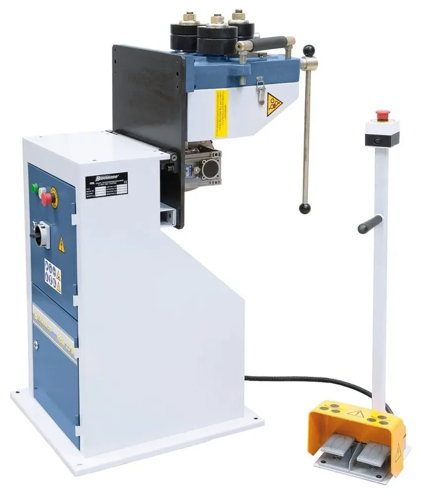 Univerzálna motorová ohýbačka s nožným ovládaním a horizontálnym a vertikálnym ohýbaním.