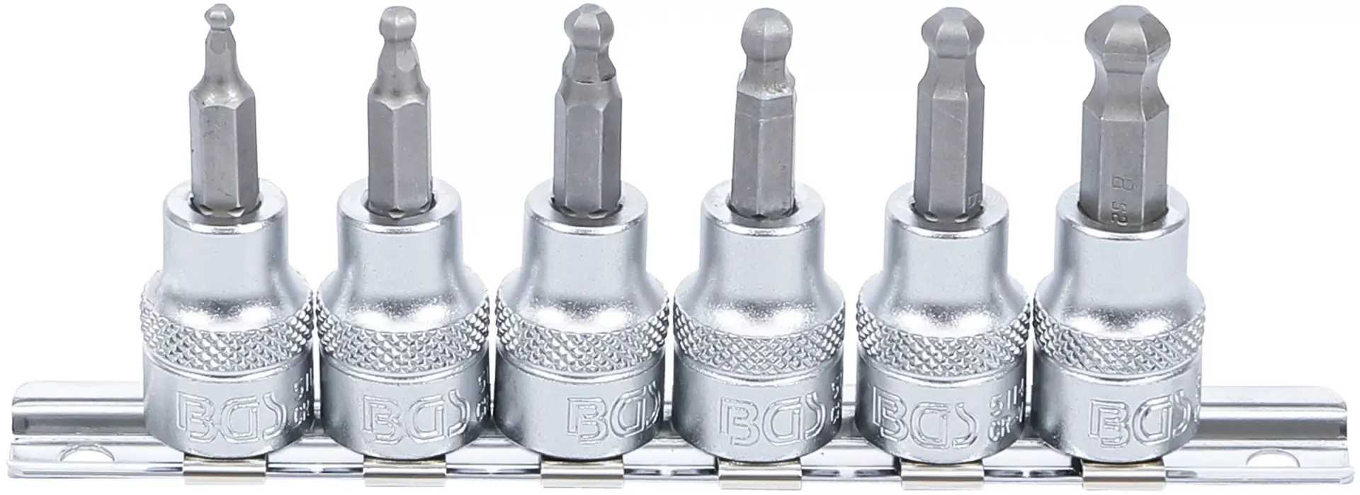 Zástrčné hlavice 3/8" 6hran s guľou 3 ÷ 8 mm BGS105109 Sada 6 dielov na koľajnici (BGS105109)