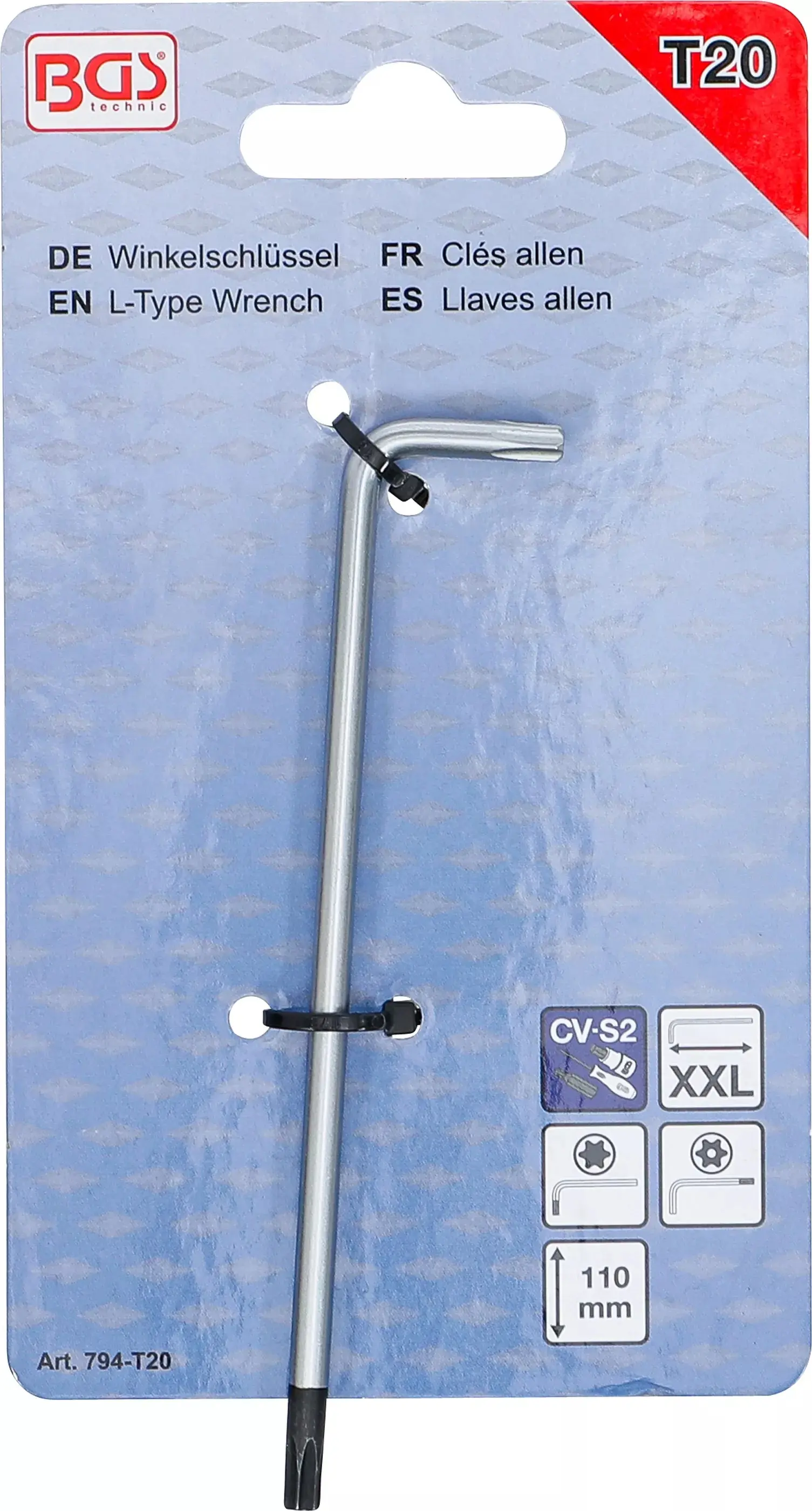 Zástrčný kľúč T-profil T20 BGS100794-T20 veľmi dlhý (pre Torx) s otvorom / bez otvoru (BGS100794-T20)
