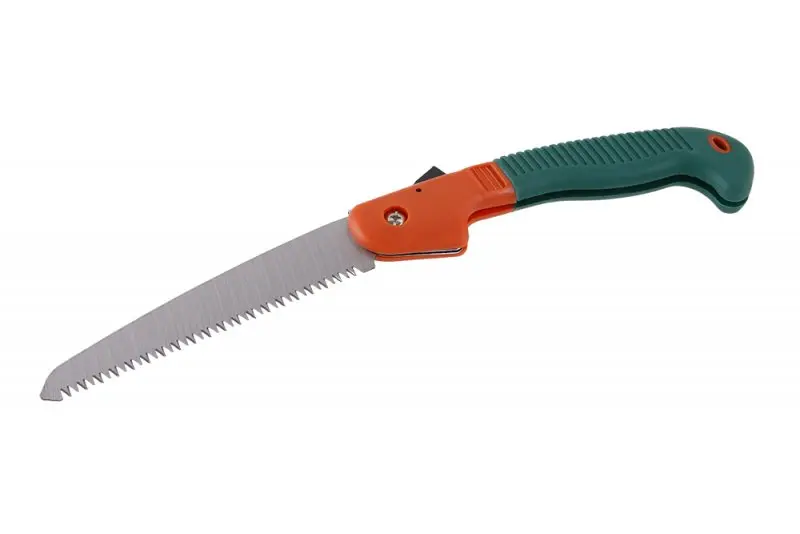 Rukoväť je ergonomicky tvarovaná a má protišmykovú úpravu, ktorá zvyšuje pohodlie pri dlhodobom používaní a znižuje riziko vykĺznutia z ruky. Blokovací mechanizmus je navrhnutý tak, aby sa píla dala bezpečne zablokovať v otvorenej aj zatvorenej polohe.
