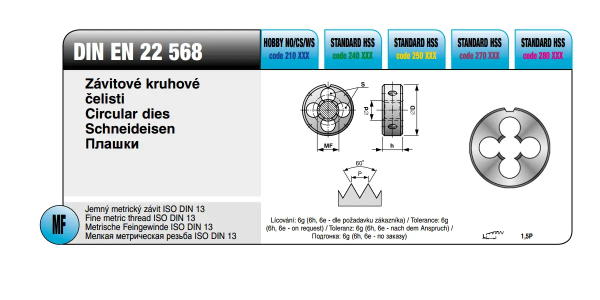 Závitorezná kruhová čeľusť HSS - pravý závit MF 3x0,35 mm, EN 22 568, 6g (BU240 031)