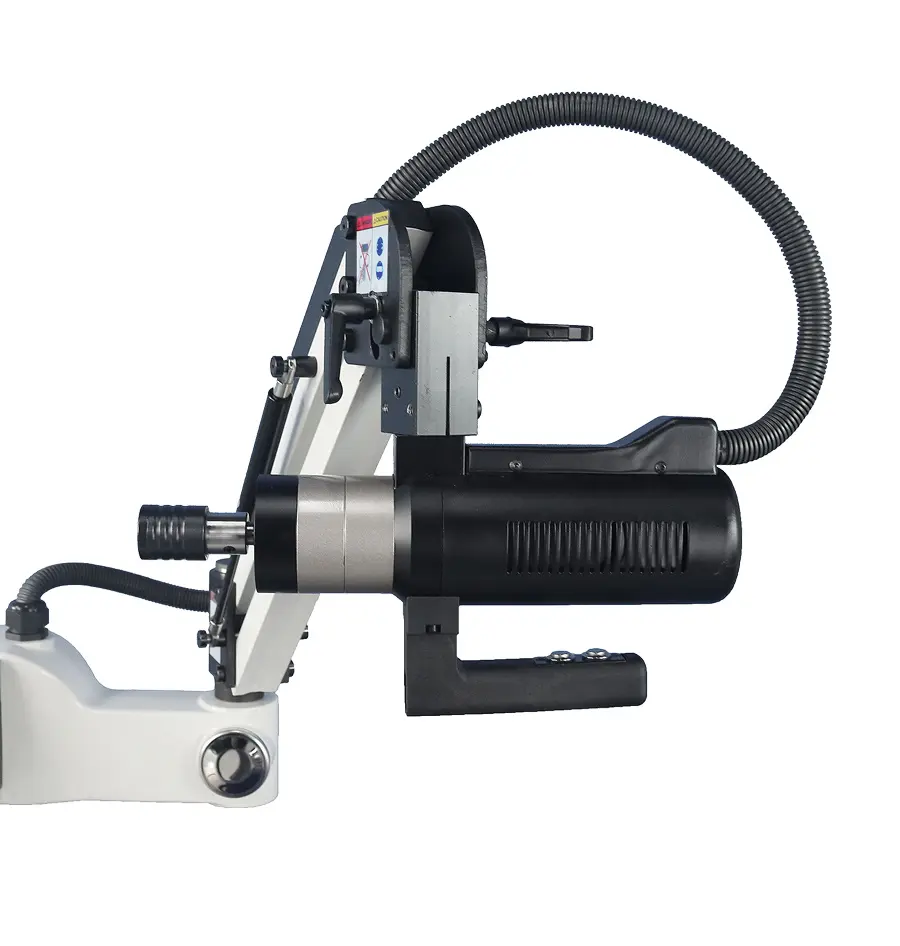 Vedenie vŕtacej hlavy v magnetickom stojane zaisťuje presný a plynulý pohyb vretena hore a dole