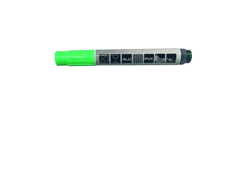 Hrubý hrot popisovača umožňuje hladké a rovnomerné nanášanie farby, čo oceníte pri označovaní kartónu, plastu, kovu a skla. Zelený atrament je odolný voči vode a oderu, takže vaše poznámky zostanú čitateľné aj pri častej manipulácii s označenými predmetmi.