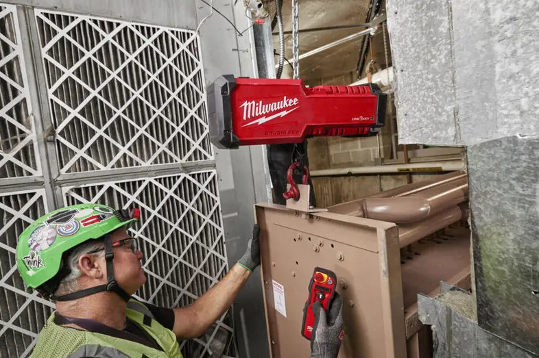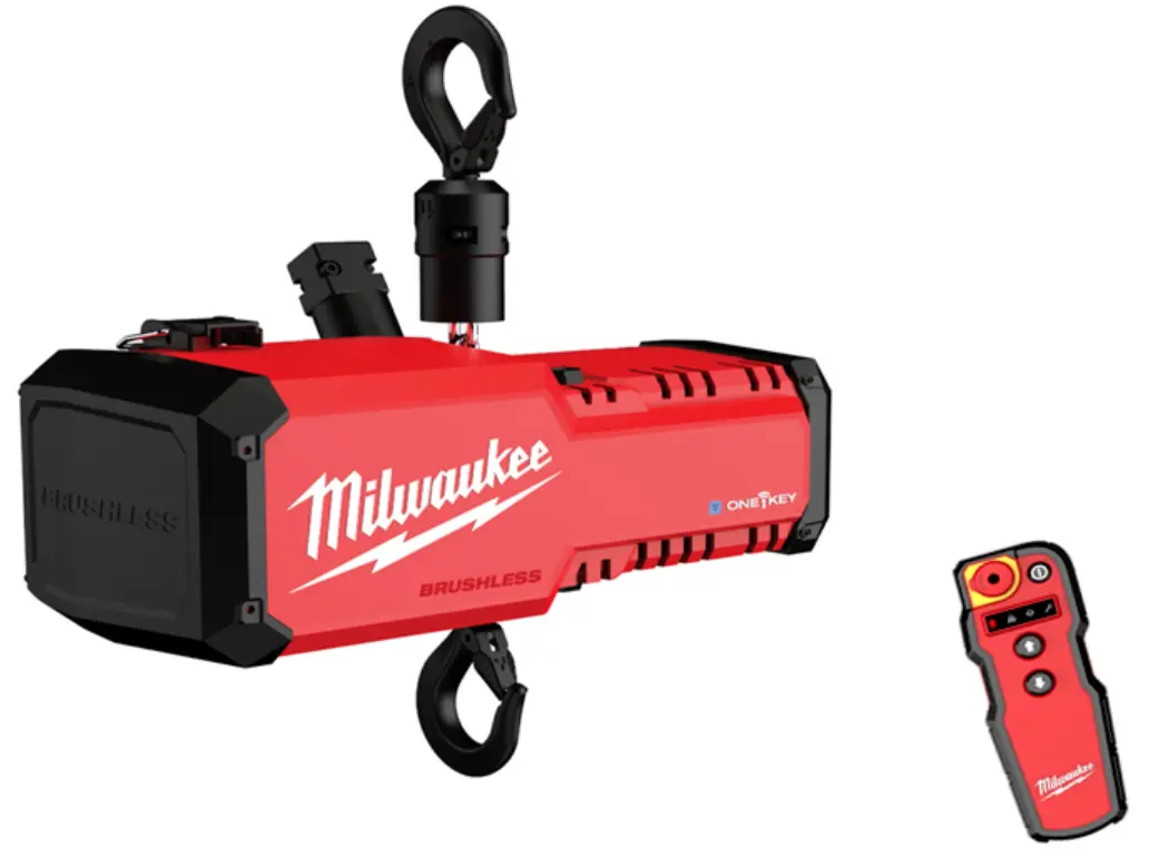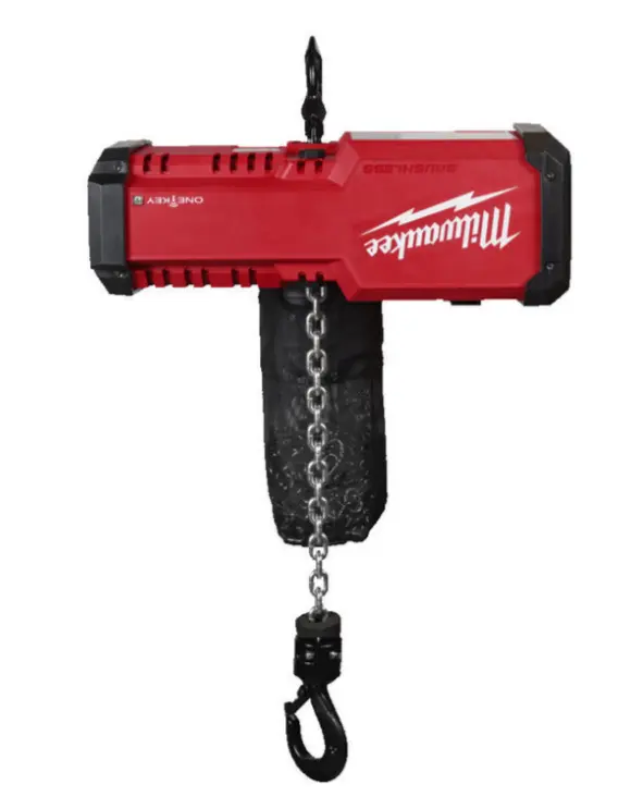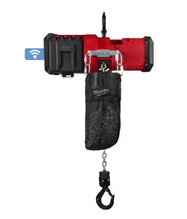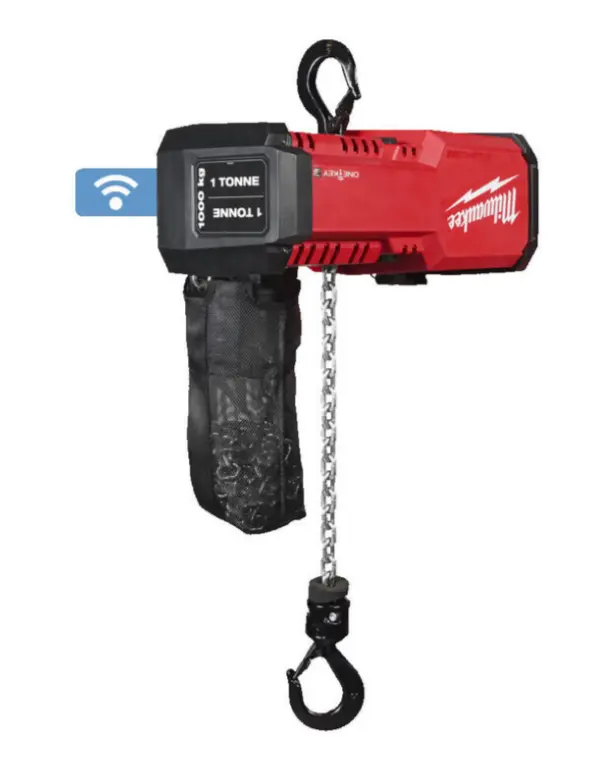 Aku bezuhlíkový řetězový kladkostroj Milwaukee M18 BLCHTO-121 s ONE-KEY zvládne zvednout až 1 tunu, nabízí bezdrátové ovládání a robustní konstrukci pro náročné provozy.