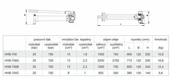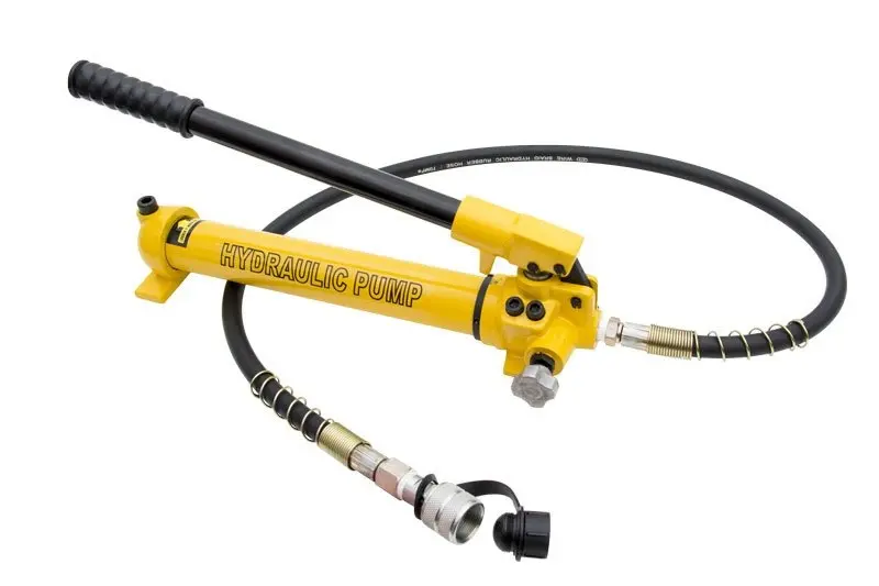Ručná dvojrýchlostná hydraulická pumpa s ovládacou pákou a s vysokotlakovou hadicou s rýchlospojkou pre pohon jednočinných hydraulických valcov, rôznych hydraulických zariadení, rozpínačov, sťahovákov, hydraulických lisov, nožníc atď.