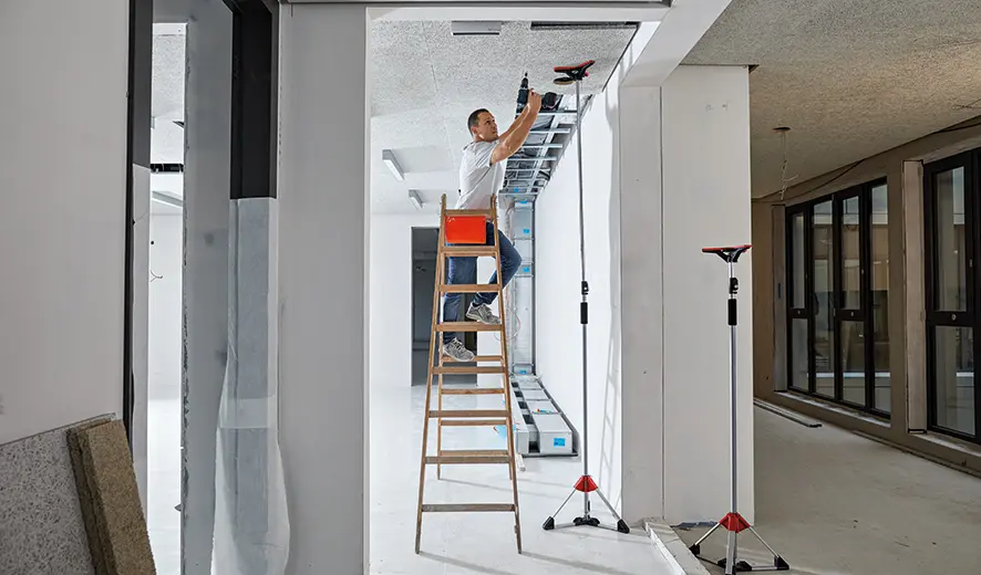 • Stabilný stojan, pretože upnutá stropná podpera pôsobí v určitých bodoch smerom dole